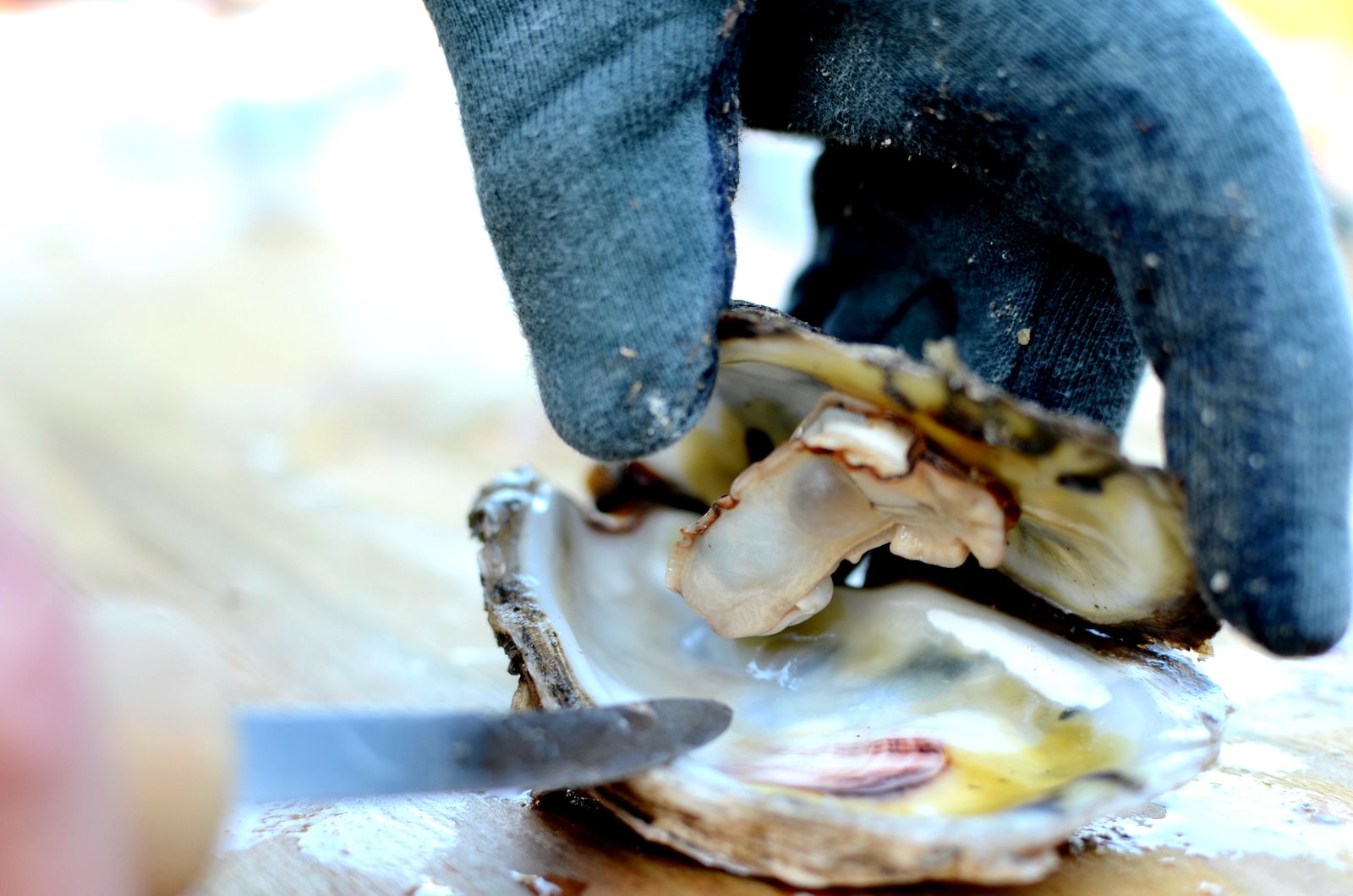 My little friend, Catherine, shucked oysters like a pro and offered them to the guests around her. And she doesn't even eat them. This is the largest oyster she shucked for the day.