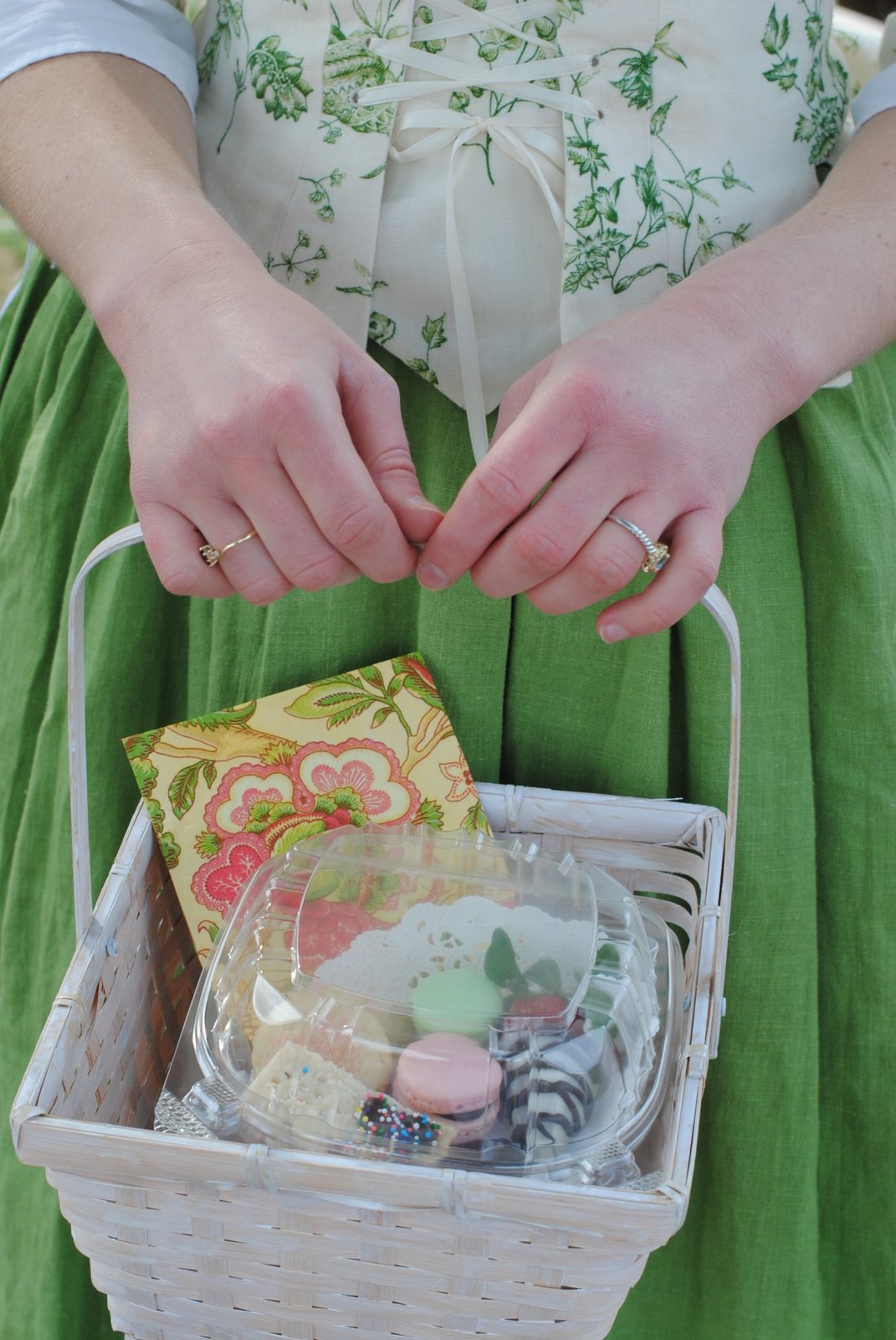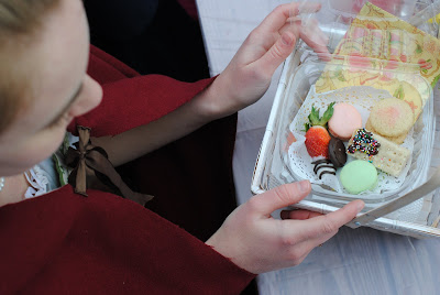 So, Miranda and I came up with the idea of Picnic Tea Party! Yes, it wasn't quite 17th-18th century to use plastic disposables, but it was grand to have no clean up work afterwards. Much of the prep work was completed before we left for Williamsburg.