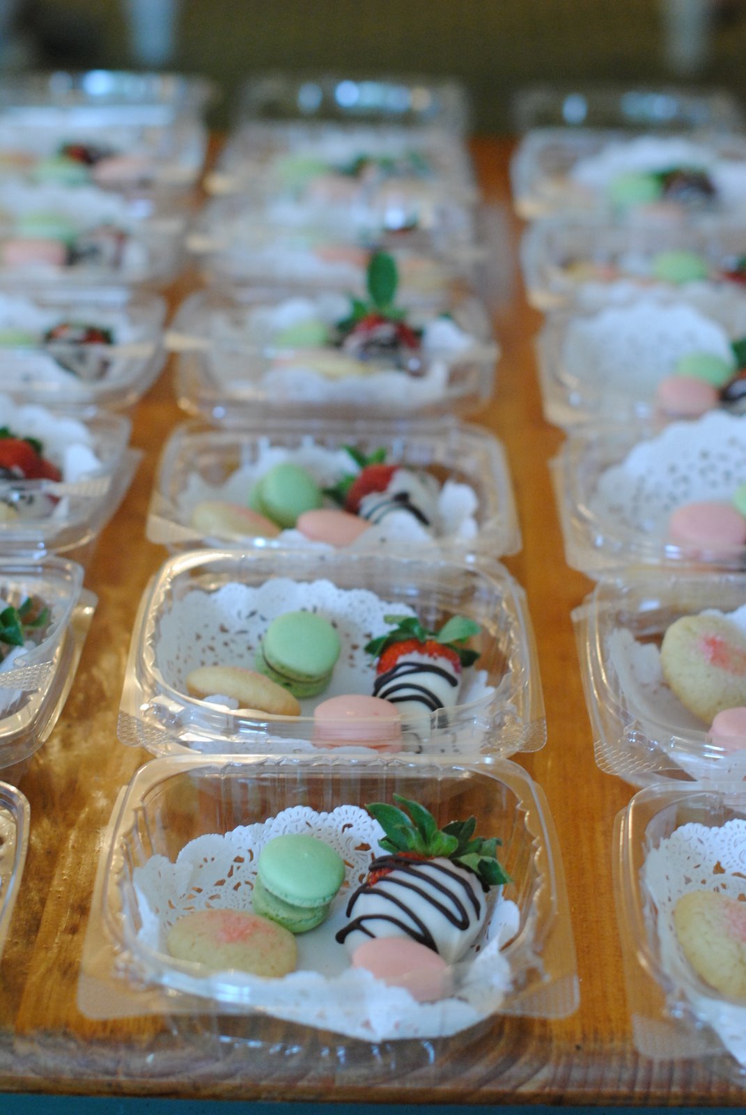 We had two clear deli boxes for each attendee: one filled with savory treats, the other with sweets.