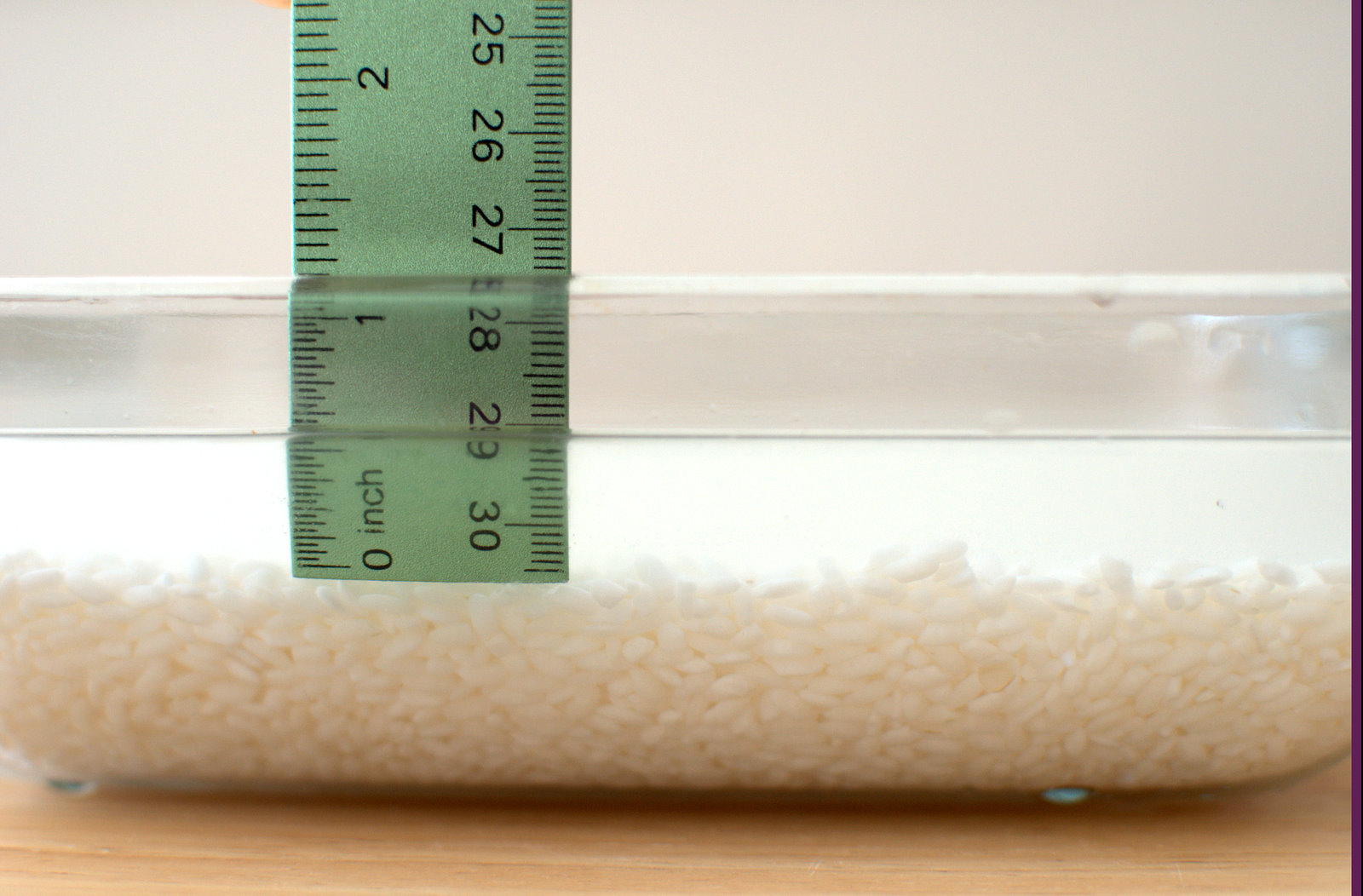 Using a ruler to show you, it is about 5/8 " from the leveled top of the rice.