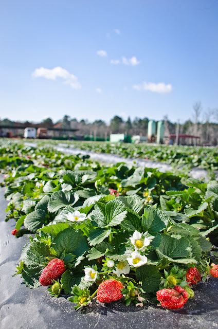 The strawberry season is quite a bit longer this year than usual here in Savannah. Â Due to warm weather, we have been getting sweet, ripe strawberries since early February. Â And living only a half mile away from my neighbor's berry farm, it's great to be able to dash over to pick fresh berries whenever I need some. Â