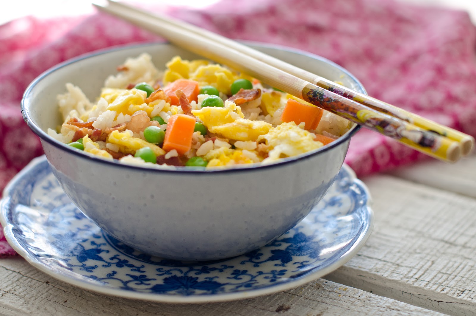 These fried rice photos were featured in Miss Sophie's food column in the Savannah Morning News today.  My children absolutely love fried rice (minus the peas and carrots) for breakfast, so whenever I start frying up the bacon, they all do a happy little jig anticipating their favorite dish.