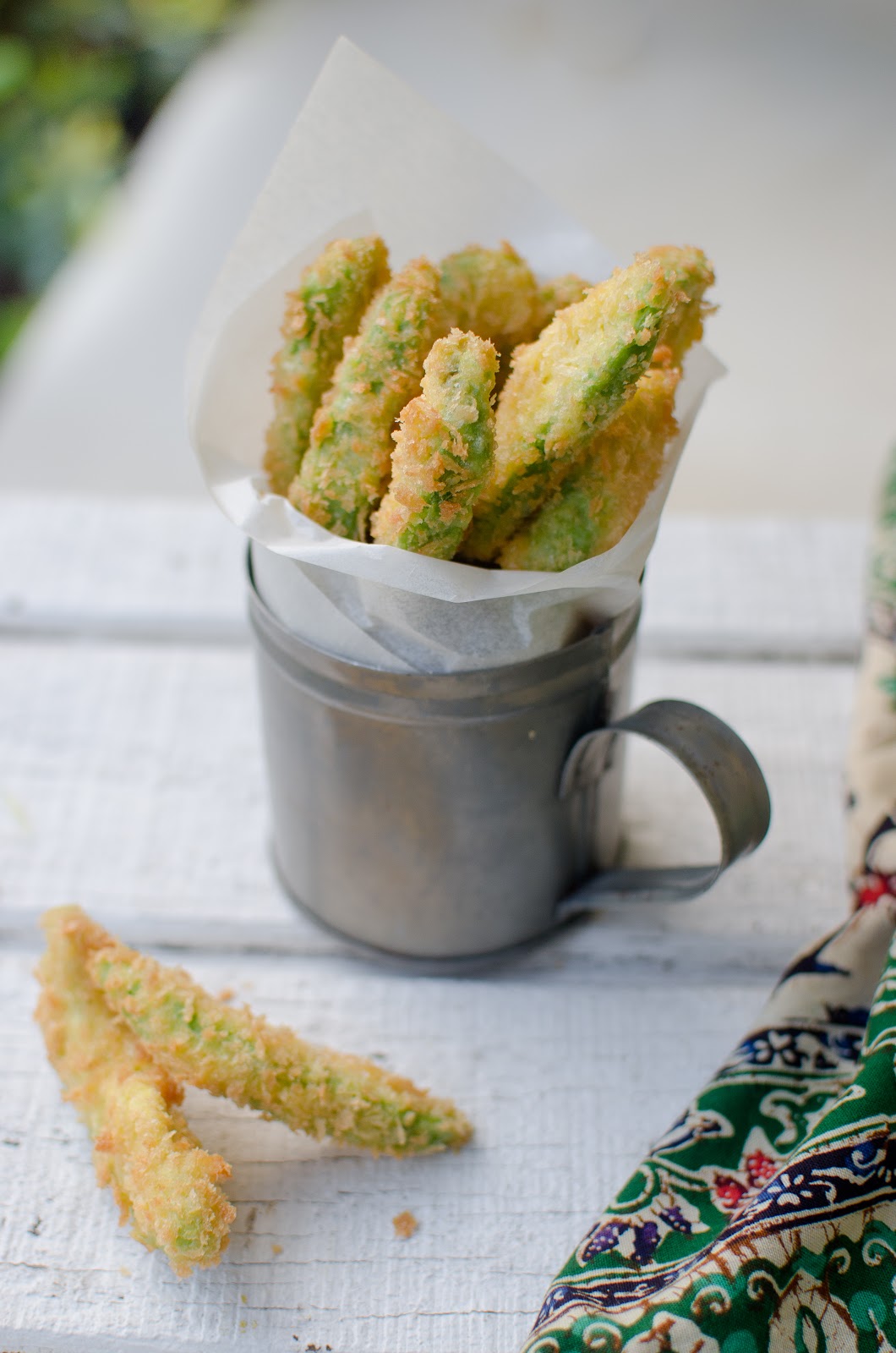 I know, it seems wrong to FRY a perfectly good avocado, but it really works, and they are just delicious: crunchy Panko exterior with the goodness of a soft, nutty inside texture.