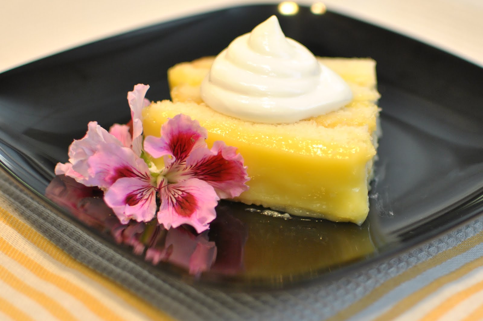 Though we love to make pretty round cakes, for practical reasons we make rectangular cakes. Lemon curd and cake should be completely cooled before layering.