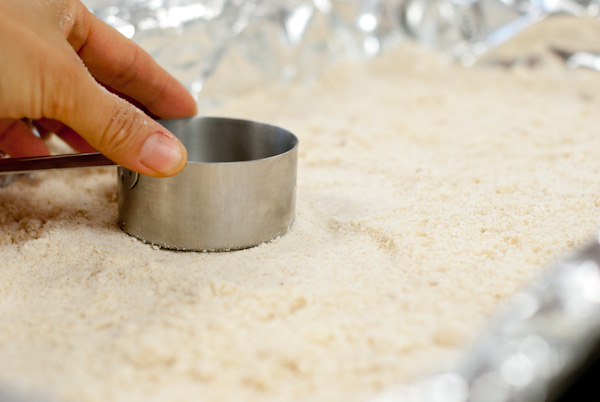 Press the short cake mixture onto the foiled lined pans.